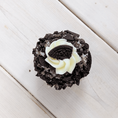 The harmony between chocolate and cookies and cream is a deliciously decadent taste experience. The base of the chocolate cupcake is as soft as possible. The cupcake is crowned with creamy vanilla frosting that is decorated with crushed cookie pieces on top, creating a tantalizing aesthetic.